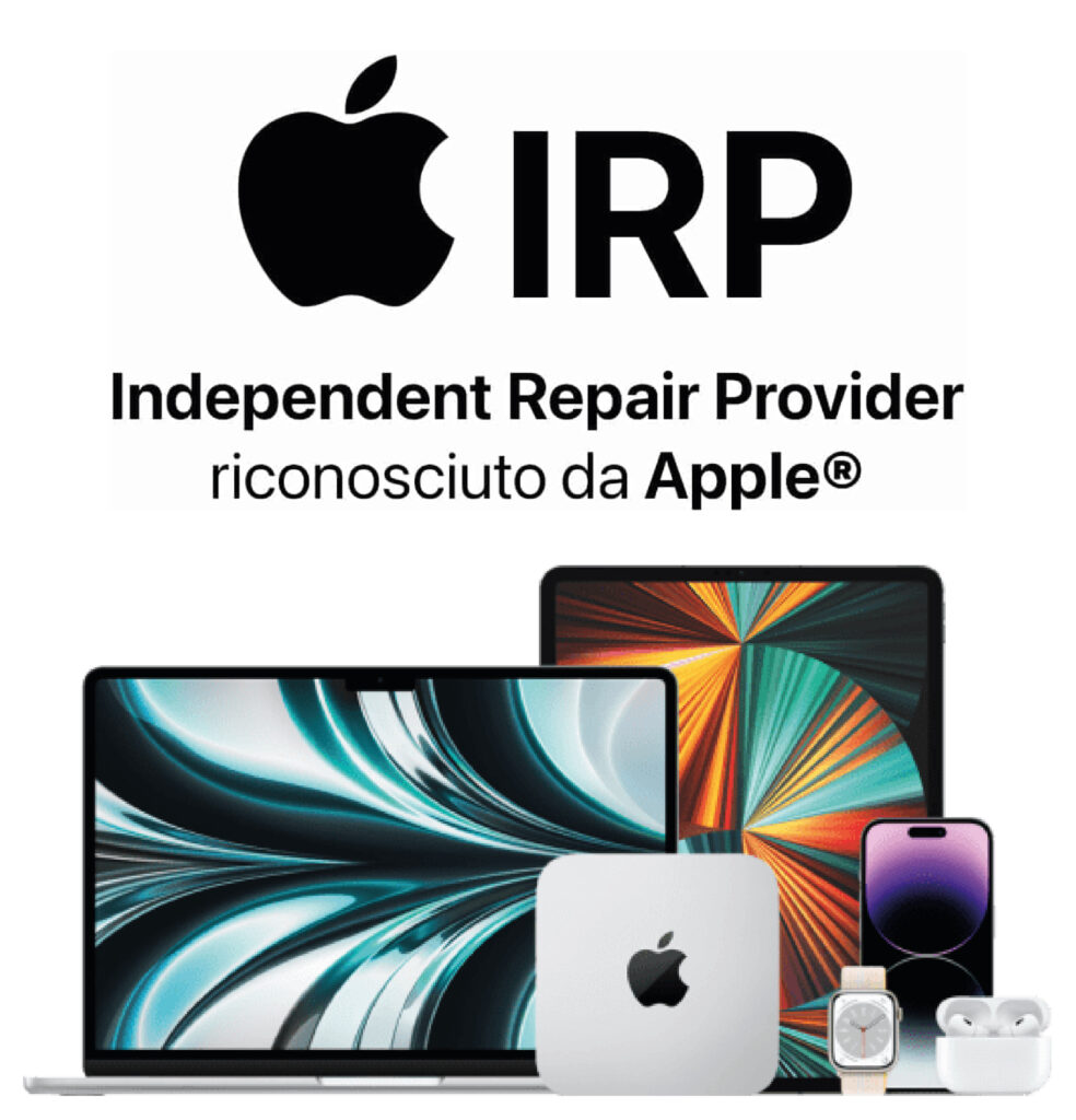 Siamo ufficialmente riconosciuti da Apple come centro Independent Repair Provider (IRP). Questo significa che possiamo effettuare riparazioni su iPhone e Mac utilizzando parti originali Apple, strumenti certificati, diagnostica ufficiale e procedure approvate direttamente da Apple. Grazie al programma IRP, garantiamo interventi fuori garanzia con standard qualitativi certificati, formazione tecnica ufficiale e massima affidabilità , pur non essendo un Apple Store o un Centro Assistenza Autorizzato Apple (AASP). Affidati a noi per una riparazione professionale, sicura e conforme agli standard Apple.